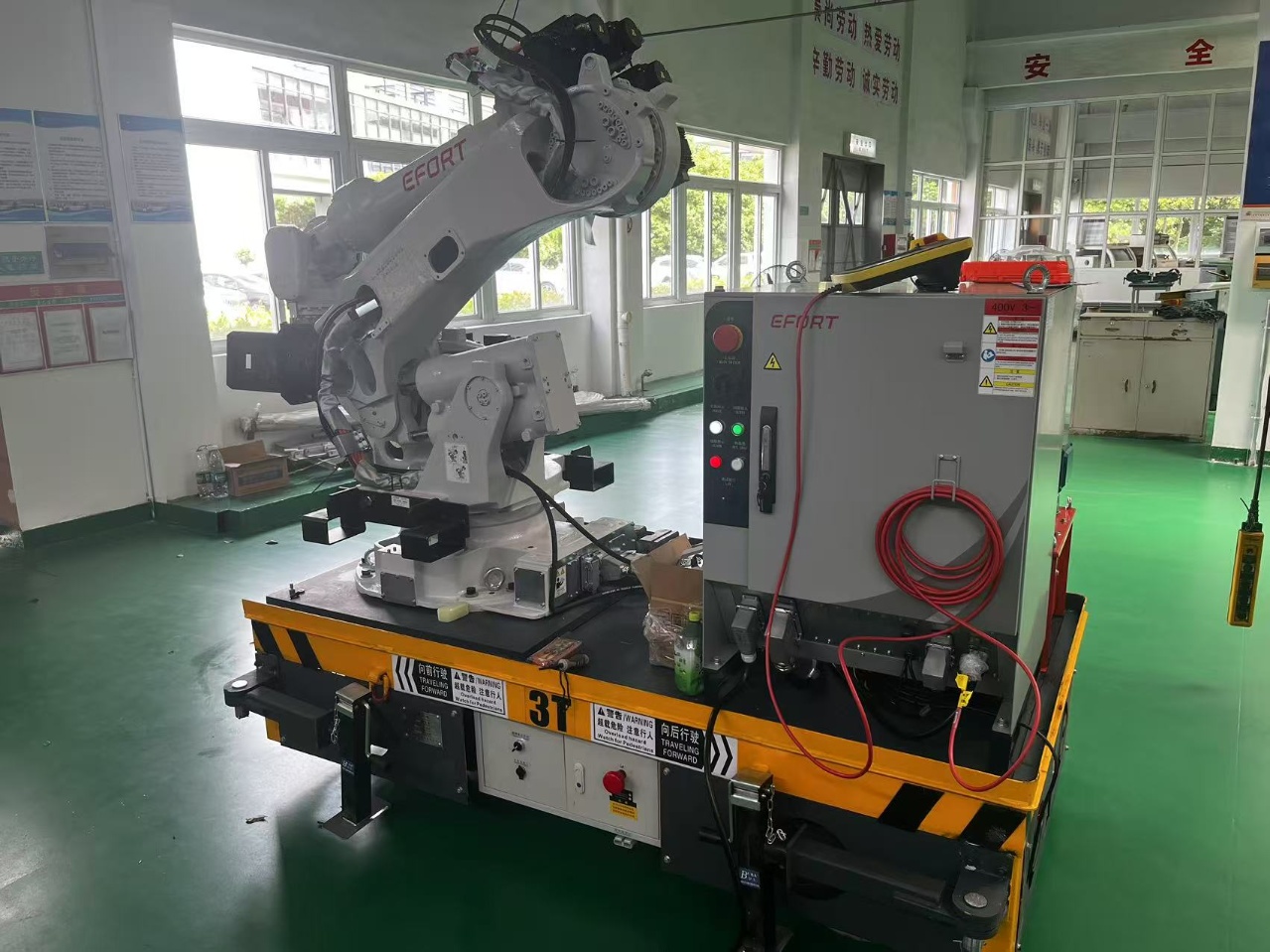 This is a customized electric flatbed cart with a rated load capacity of 3 tons. In addition to its mobility function, the mechanical arm attached to the workbench can be flexibly moved and operated, greatly improving work efficiency.