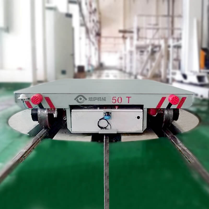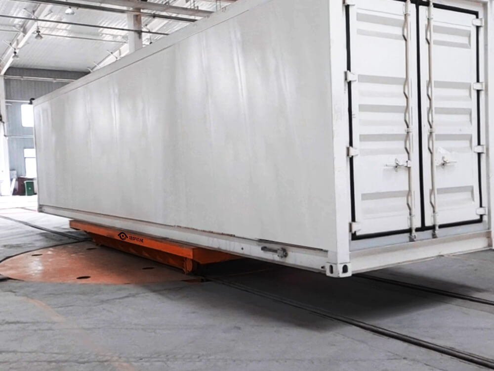 This project is a combination of a rail turntable and a rail cart. Transport cable drive device. The turntable platform has a load of 50 tons and can be rotated 90 degrees, mainly for the convenience of changing the transport of the rail cart in the workshop, and changing the use of the track. The customer puts the wire board on the rail car, and the rail car changes the direction through the turntable to transport to the corresponding location, which is very suitable for the needs of users.