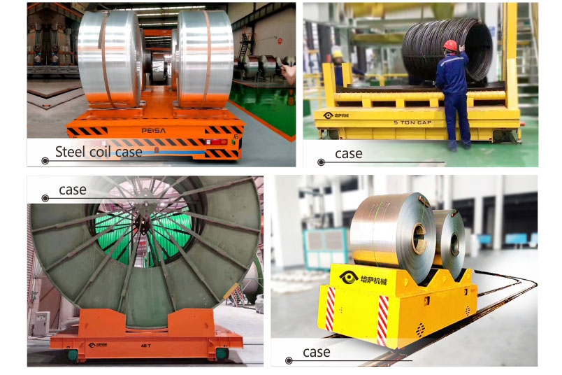 The battery-powered Transfer Cart, used to transport 50 tons of steel coils, is a specially designed industrial vehicle commonly used in steel mills, warehouses and logistics centers to handle the internal transportation of bulk materials. Such transfer trolleys combine battery-electric drive and heavy-duty load capacity, ensuring efficient and safe operation in large industrial environments.