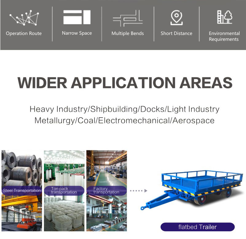 The industrial trailer is usually composed of a frame, wheels, and connecting devices, and the structure is relatively simple and durable.